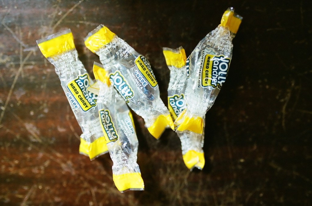 A collection of empty Jolly Rancher wrappers. Sometimes these empty wrappers will accumulate near me as I try to cope, until I can go throw them away. Over the past few months I’ve been slowly eating hard candy when my anxiety is super intense or sometimes during emotional or somatic flashbacks. It helps to notice the flavor to try to ground myself and cope. I know it’s not the healthiest option to be using candy and it’s also healthier than some things I’ve done to cope.