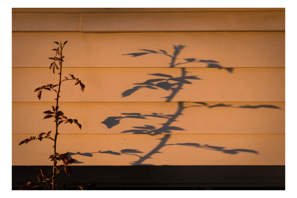 This branch of our rose bush and its shadow caught my eye one evening at sunset as I was enjoying the beautiful light around our home.