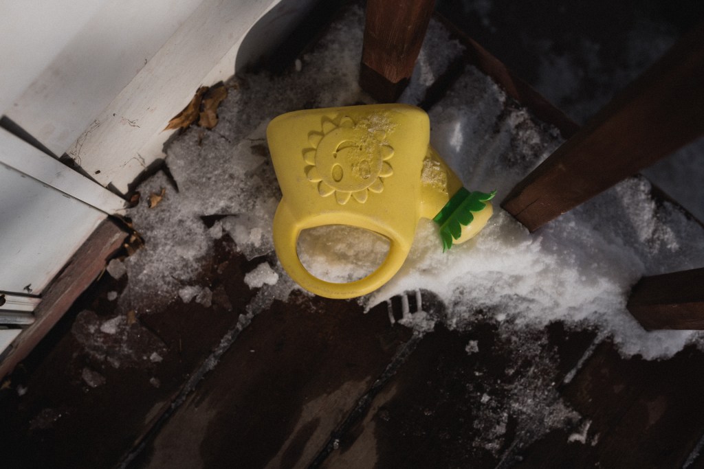 A cheerful, yellow watering can right where the kids left it. Didn’t seem necessary with the current freezing cold weather that day when I spotted this outside. Taking the time to notice this silly situation helped to bring a little light into my day which was filled with difficult moments and anxiety.